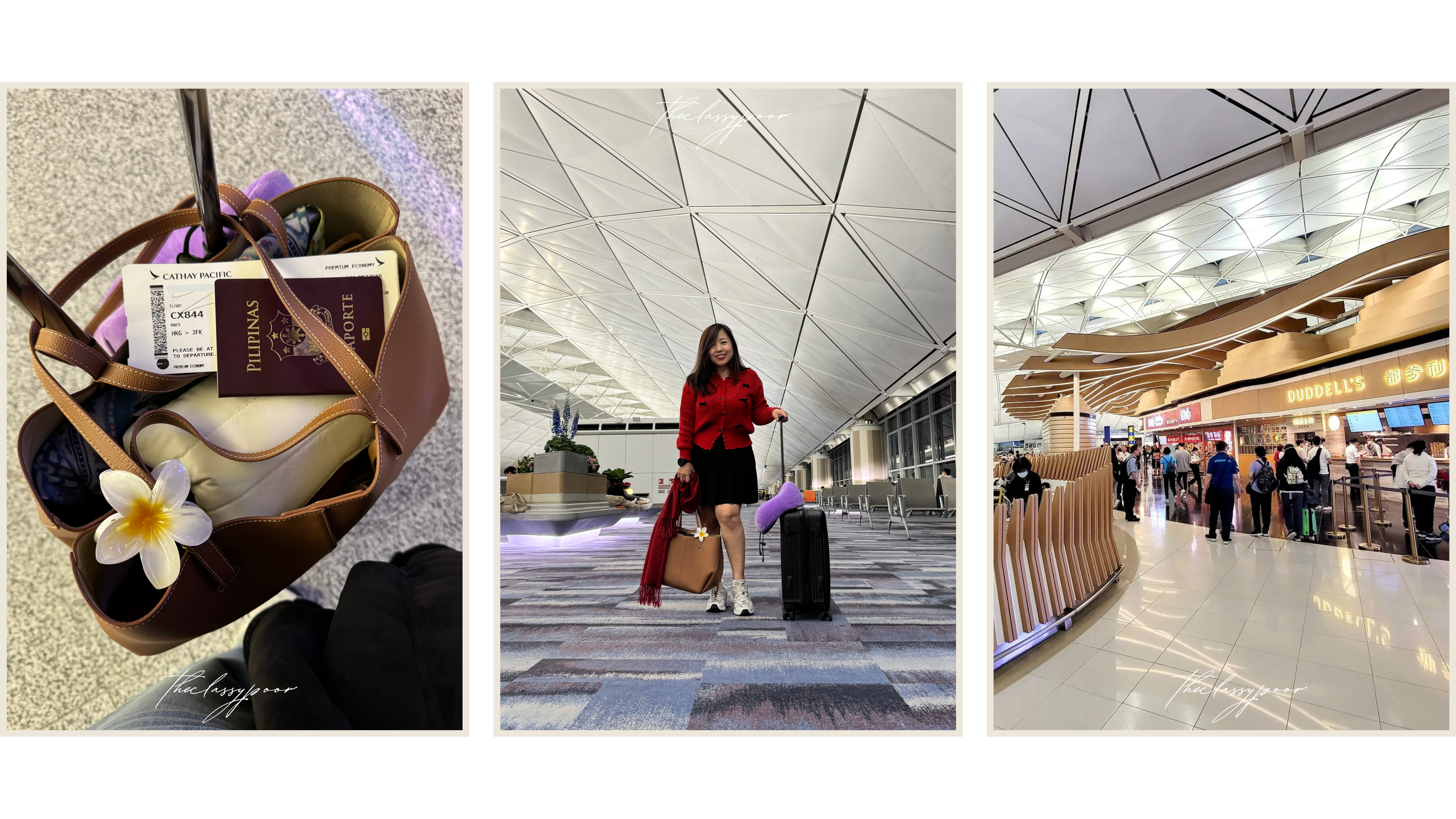 We landed in Hong Kong around midnight, and I had a 5-hour layover ahead. I didn’t want to risk freezing later on, so before boarding my next flight, I did a quick outfit change: changed my skirt for a pair of trusty maong pants, pulled on a black thermal turtleneck, and topped it with my black leather jacket. New York was waiting, and it was -0°C!